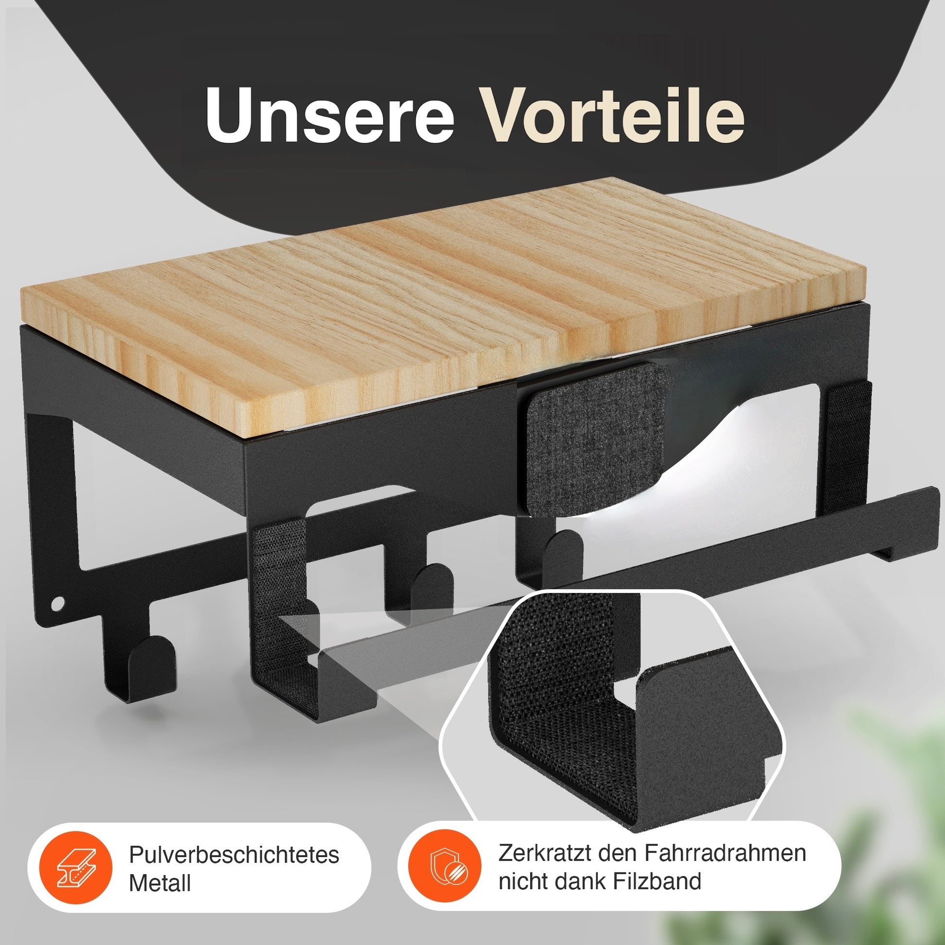 Ein weicher Filzüberzug an der Aufhängung schützt deinen Rahmen zuverlässig vor Kratzern. Die kinderleichte Montage sorgt dafür, dass du dein Rad in wenigen Minuten stilvoll präsentierst – und es jederzeit schnell wieder greifen kannst.